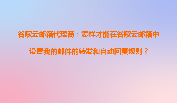 2025-10-25谷歌云郵箱代理商:高效郵件管理指南 作為現代企業溝通的核心工具,電子郵件的高效管理直接關系到工作效率。谷歌云郵箱(GmailforBusiness)因其強大的功能、穩定的性能和靈活的定制性,成為眾多企業的首選。本文...