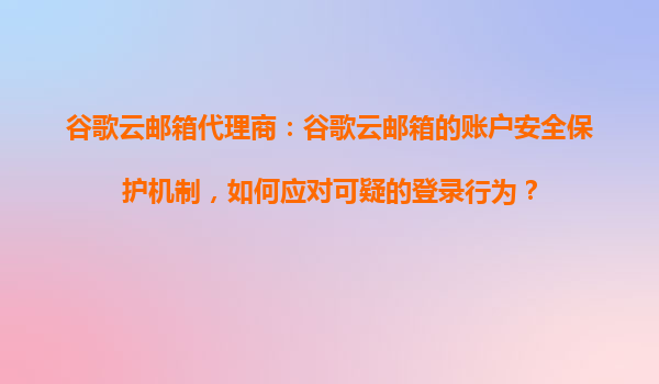 2025-10-25谷歌云郵箱代理商:谷歌云郵箱的賬戶安全保護機制如何應對可疑的登錄行為 引言 在數字化時代,電子郵件已成為企業和個人溝通的重要工具。谷歌云郵箱(Gmail)作為全球領先的電子郵件服務之一,憑借其強大的安...