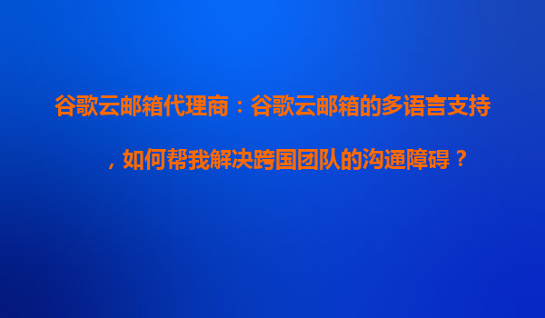 2025-10-25谷歌云郵箱代理商:谷歌云郵箱的多語言支持,如何幫我解決跨國團隊的溝通障礙? 在國際化的商業環境中,跨國團隊協作已成為常態。然而,語言差異、時區障礙以及信息同步問題往往成為團隊高效溝通的絆腳石。谷歌云...