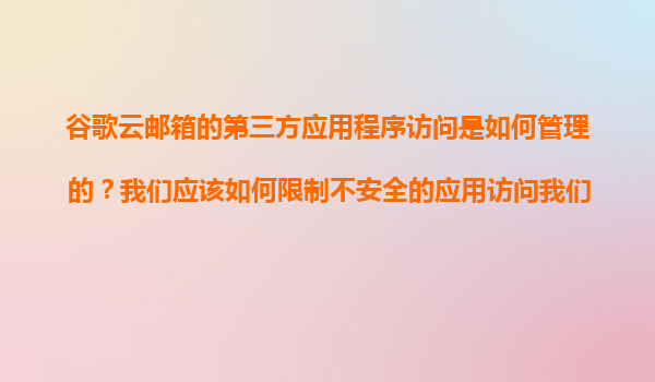 2025-11-09谷歌云郵箱第三方應用程序訪問管理及安全策略 1.谷歌云郵箱第三方應用程序訪問機制 谷歌云郵箱(Gmail)通過OAuth2.0協議授權第三方應用程序訪問用戶數據,確保權限可控且安全性高。第...