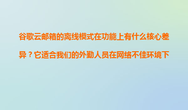 2025-11-09谷歌云郵箱離線模式的核心功能差異與外勤人員適用性分析 一、谷歌云郵箱離線模式的三大核心功能差異 1.1郵件本地化存儲與管理 與常規在線模式相比,離線模式會將最近郵件(默認30天內)緩存至本地瀏覽器存...