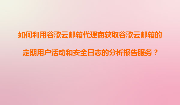 2025-11-09如何利用谷歌云郵箱代理商獲取定期用戶活動和安全日志分析報告 一、谷歌云郵箱的核心價值 谷歌云郵箱(GoogleWorkspace)是企業級郵件服務解決方案,提供: 99.9%SLA可靠性保障 TB級云存儲空間 AI驅動的垃...