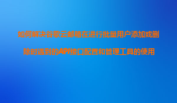 2025-11-09如何解決谷歌云郵箱批量用戶操作的API接口配置與管理工具使用難題 一、谷歌云郵箱批量操作的常見痛點與需求 在企業IT管理中,批量添加或刪除用戶是高頻需求。谷歌云郵箱(GoogleWorkspace)...