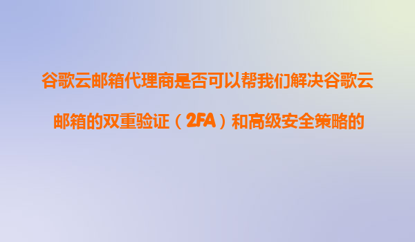 2025-11-08谷歌云郵箱代理商助力企業高效部署雙重驗證與高級安全策略 企業郵箱安全面臨的挑戰 在數字化辦公時代,企業郵箱承載著重要通信與數據交換功能,但也面臨著日益復雜的網絡安全威脅。傳統的...