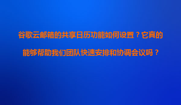 2025-11-08谷歌云郵箱共享日歷功能簡介 谷歌云郵箱(Gmail)的共享日歷功能是谷歌云生態中的重要協作工具,它允許團隊成員之間輕松共享日程安排,提升溝通效率。無論是個人日程管理還是團隊協作,共享日歷都能直觀呈現每個人的...