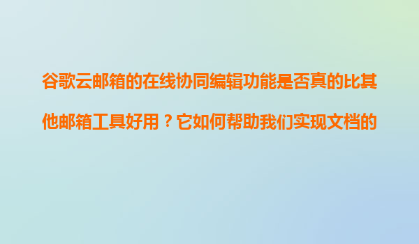 2025-11-08谷歌云郵箱的在線協同編輯功能是否真的比其他郵箱工具好用?它如何幫助我們實現文檔的共享和Co-Editing? 引言 在當今信息化快速發展的時代,郵箱工具的用途早已突破傳統的郵件收發功能,尤其是在線協同編輯和文檔...
