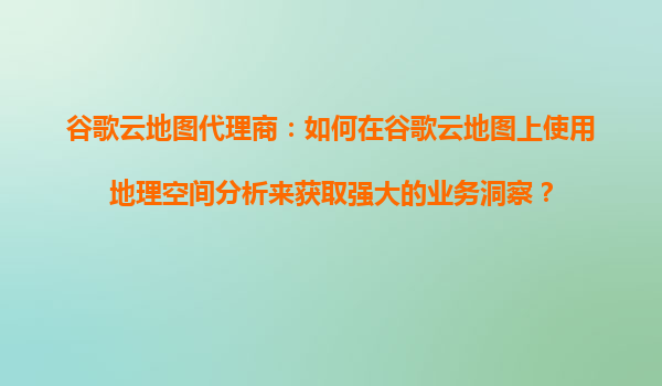 谷歌云地圖代理商:如何在谷歌云地圖上使用地理空間分析來獲取強大的業務洞察?