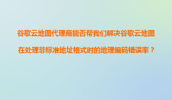 2025-11-10谷歌云地圖代理商如何助力解決非標(biāo)準(zhǔn)地址地理編碼難題 在全球數(shù)字化進(jìn)程中,地理信息系統(tǒng)(GIS)的重要性日益凸顯。然而,非標(biāo)準(zhǔn)地址格式的處理一直是行業(yè)痛點,導(dǎo)致地理編碼錯誤率居高不下。作為全球領(lǐng)先的云服務(wù)...