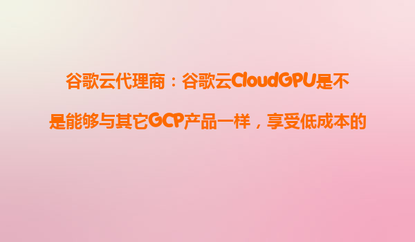 谷歌云代理商:谷歌云CloudGPU與其它GCP產品的低成本優勢解析