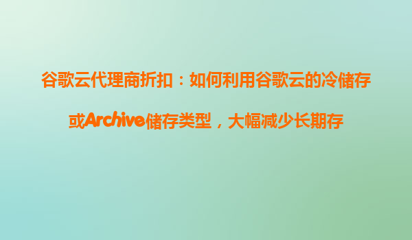 2025-10-29谷歌云代理商折扣:如何利用冷儲存或Archive儲存大幅降低長期存儲成本 谷歌云存儲服務的核心優勢 谷歌云平臺提供多樣化存儲解決方案,其中Coldline(冷儲存)和Archive(歸檔儲存)是專為不常訪問數據設計...