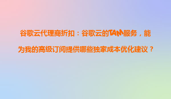 2025-10-28谷歌云TAM服務:為高級訂閱量身定制的成本優化方案 谷歌云TAM服務的核心價值 谷歌云的技術客戶經理(TAM)服務是專為企業高級訂閱用戶提供的專屬支持計劃。通過一對一的專業技術顧問支持,TAM服務...