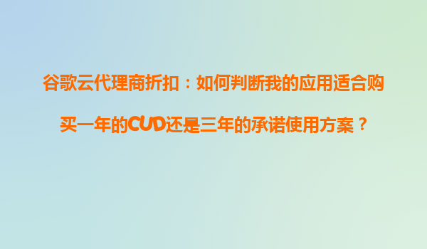 2025-10-27谷歌云代理商折扣:如何判斷我的應用適合購買一年的CUD還是三年的承諾使用方案? 引言 在數字化轉型的浪潮中,云計算已成為企業IT基礎設施的核心。谷歌云平臺(GoogleCloudPlatform,GCP)憑借...