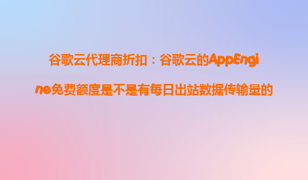 2025-10-26谷歌云代理商折扣:谷歌云AppEngine免費額度及數據傳輸限制解析 一、谷歌云AppEngine免費額度詳解 谷歌云的AppEngine作為一款PaaS(平臺即服務)產品,為開發者...