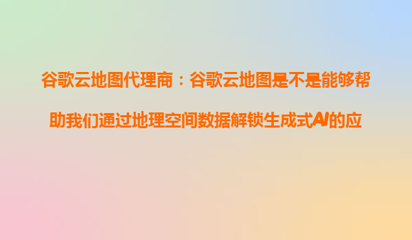 2025-10-26谷歌云地圖代理商:解鎖生成式AI的地理空間數據應用場景 在數字化轉型的浪潮中,地理空間數據與生成式人工智能(AI)的結合正開辟全新的商業和技術可能性。作為谷歌云地圖的代理商,我們深刻理解谷歌云平臺在這...