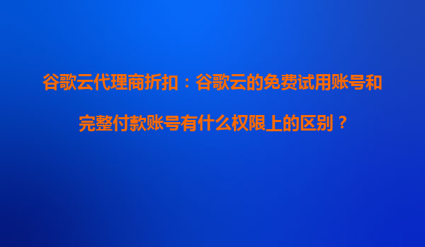 2025-10-26谷歌云代理商折扣:免費試用賬號與完整付款賬號的權限區別 作為全球領先的云計算服務提供商,谷歌云(GoogleCloudPlatform,GCP)憑借其強大的基礎設施、豐富的產品生態和靈活的定價策略,吸引了大量企業和個人開...
