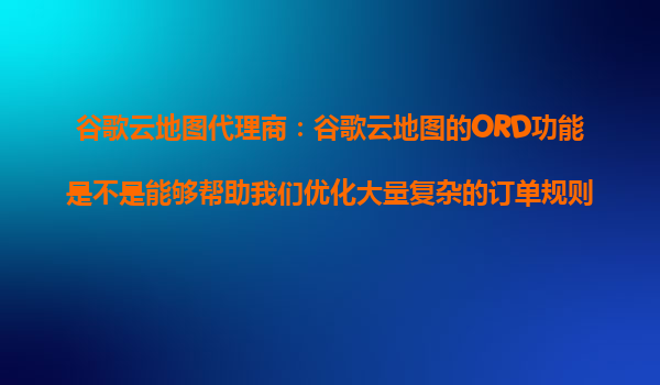 2025-10-25谷歌云地圖代理商:谷歌云地圖的ORD功能在優化復雜訂單規則中的應用 一、什么是谷歌云地圖的ORD功能? 谷歌云地圖的ORD(OrderRoutingandDispatch)功能是一項基于谷歌云強大計算能力和地理位置服務...