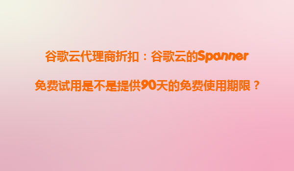 2025-10-25谷歌云代理商折扣:深入解析Spanner的90天免費試用政策 一、谷歌云Spanner免費試用政策詳解 谷歌云Spanner作為全球領先的分布式關系型數據庫服務,確實為新用戶提供了90天的免費試用期。這一政策...