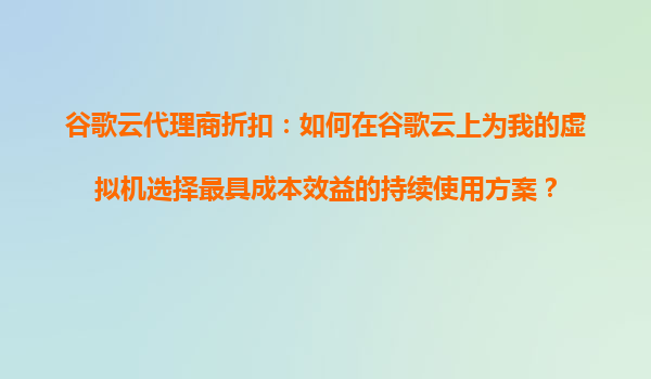 2025-10-25谷歌云代理商折扣:如何在谷歌云上為我的虛擬機選擇最具成本效益的持續使用方案? 引言 在云計算領域,谷歌云(GoogleCloudPlatform,GCP)憑借其強大的基礎...