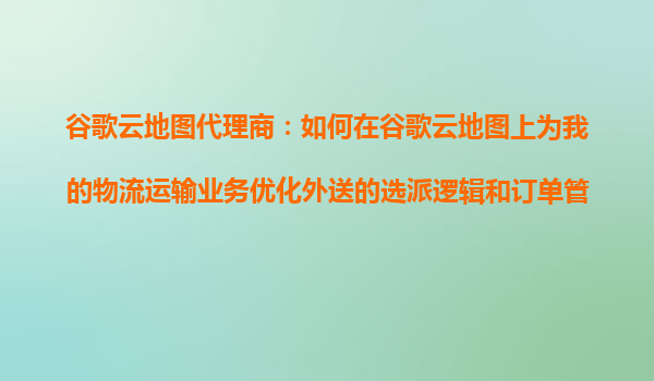 2025-10-25谷歌云地圖代理商:如何在谷歌云地圖上為物流運輸業務優化外送選派邏輯和訂單管理 引言 在當今高度數字化的物流行業中,利用谷歌云地圖(GoogleMapsPlatform)的強大功能可以為物流運輸業務帶來...