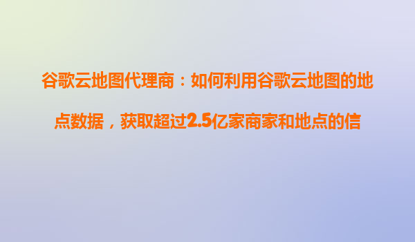 2025-10-25谷歌云地圖代理商:如何利用谷歌云地圖的地點數據,獲取超過2.5億家商家和地點的信息? 谷歌云地圖的核心優勢 谷歌云地圖(GoogleMapsPlatform)作為全球領先的地圖服務之一,其核...