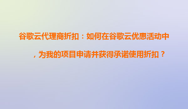 2025-10-25谷歌云代理商折扣:如何在谷歌云優惠活動中為項目申請并獲得承諾使用折扣? 引言 隨著云計算技術的飛速發展,越來越多的企業選擇將業務遷移到云端,以提高靈活性、降低成本并增強安全性。谷歌...