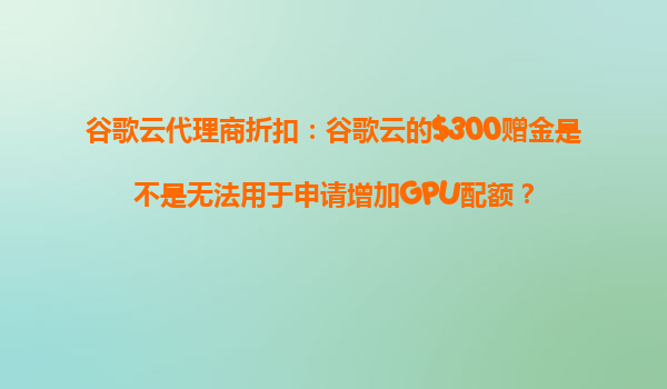 2025-10-24谷歌云代理商折扣:谷歌云的$300贈金是否可用于申請增加GPU配額? 前言 隨著云計算技術的快速發展,越來越多的企業和開發者選擇使用谷歌云(GoogleCloudPlatform,簡稱GCP)來部署和管理他們的業務。...