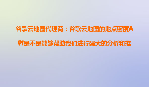 2025-10-24谷歌云地圖代理商:谷歌云地圖的地點密度API是不是能夠幫助我們進行強大的分析和推薦? 谷歌云地圖的地點密度API概述 谷歌云地圖的地點密度API(PlacesDensityAPI)是一種基于谷歌...