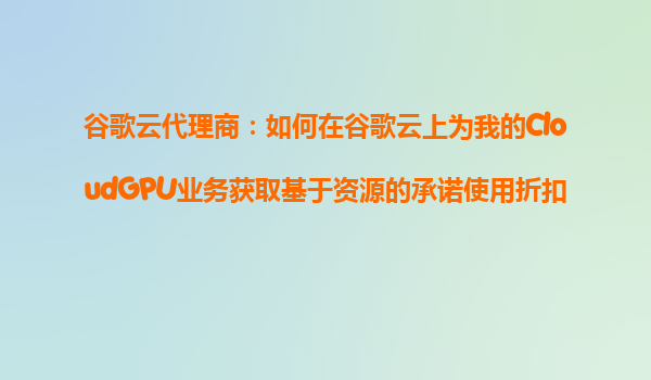2025-10-24谷歌云代理商:如何在谷歌云上為CloudGPU業務獲取基于資源的承諾使用折扣? 谷歌云的優勢 谷歌云(GoogleCloudPlatform,GCP)作為全球領先的云計算服務提供...