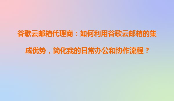 2025-10-23谷歌云郵箱代理商:如何利用谷歌云郵箱的集成優勢,簡化日常辦公和協作流程 一、谷歌云郵箱的核心集成優勢 谷歌云郵箱(GmailforBusiness)作為谷歌工作空間(GoogleWorkspace)的核...