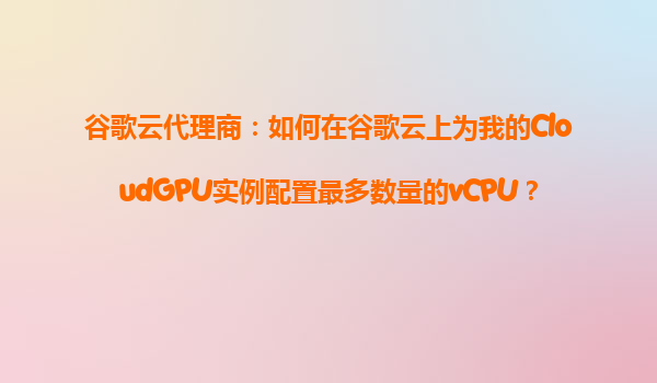 2025-10-23谷歌云代理商:如何在谷歌云上為我的CloudGPU實例配置最多數量的vCPU? 引言 在當今數據驅動的世界中,云計算已成為企業和技術團隊不可或缺的一部分。谷歌云(GoogleCloudPlatform,GCP)以其高性能、靈...