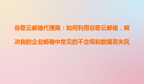 2025-10-22谷歌云郵箱代理商:如何利用谷歌云郵箱,解決企業郵箱中常見的不合規和數據丟失風險? 引言 在數字化時代,企業郵箱的安全性、合規性以及數據管理能力成為企業運營的核心需求。傳統郵箱系統往往面...