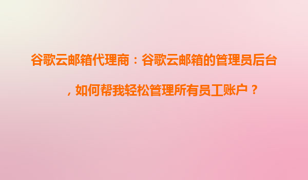 2025-10-22谷歌云郵箱代理商:如何通過管理員后臺輕松管理所有員工賬戶 一、谷歌云郵箱的企業價值 谷歌云郵箱(GoogleWorkspace)作為全球領先的企業級郵箱解決方案,不僅提供穩定的郵件服務,還...