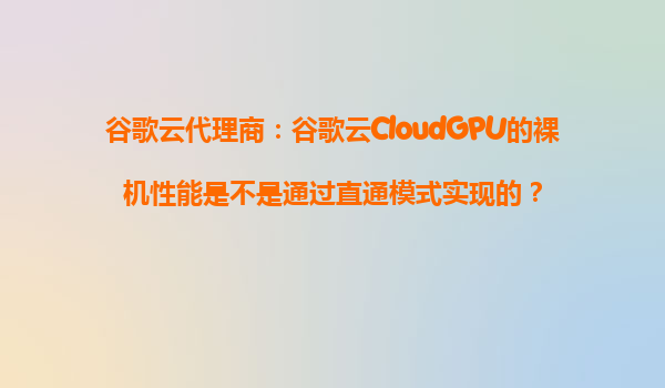 谷歌云代理商解析:谷歌云CloudGPU的裸機性能是否通過直通模式實現? 一、谷歌云CloudGPU的核心性能優勢 谷歌云(GoogleCloudPlatform,GCP)的CloudGPU服務以其...