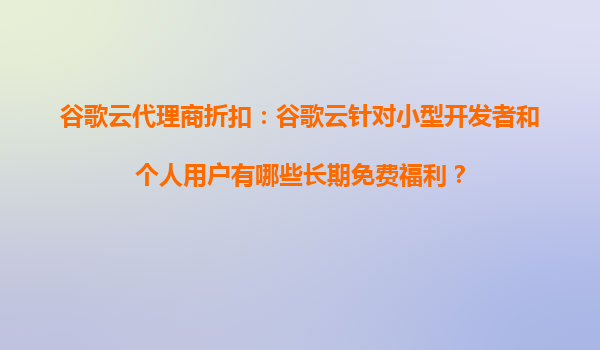2025-10-22谷歌云代理商折扣:谷歌云針對小型開發者和個人用戶的長期免費福利解析 一、谷歌云長期免費福利概覽 谷歌云(GoogleCloudPlatform,GCP)為降低開發門檻,吸引更多小型開發者和個人用...