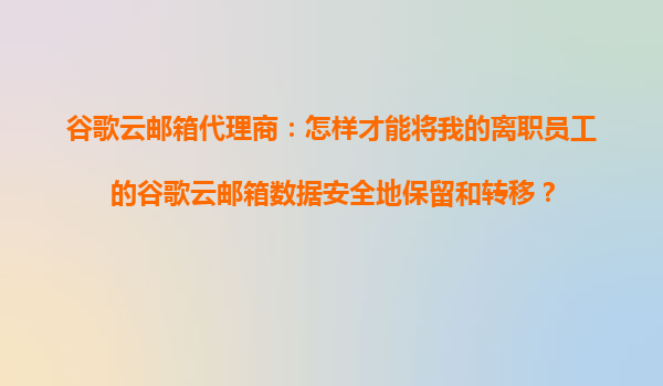 2025-10-22谷歌云郵箱代理商指南:安全保留和轉移離職員工郵箱數據 引言 在企業運營過程中,員工流動是不可避免的。當員工離職時,如何安全、高效地保留和轉移其谷歌云郵箱(GoogleWorkspace)中的數據...