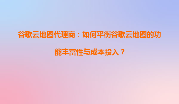 2025-10-22谷歌云地圖代理商:如何平衡谷歌云地圖的功能豐富性與成本投入? 引言 作為谷歌云地圖代理商,客戶常問的一個問題是:如何在利用谷歌云地圖強大功能的同時,控制成本投入?谷歌云地圖以其高精度、實時...