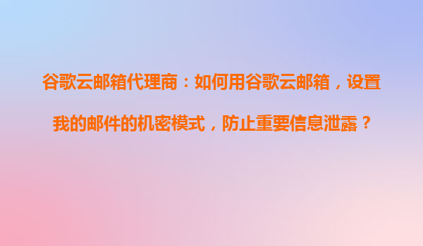 2025-10-22谷歌云郵箱代理商:如何用谷歌云郵箱設置郵件的機密模式,防止重要信息泄露? 一、谷歌云郵箱的機密模式簡介 谷歌云郵箱(GoogleWorkspace)作為企業級郵件服務,提供了強大的數...