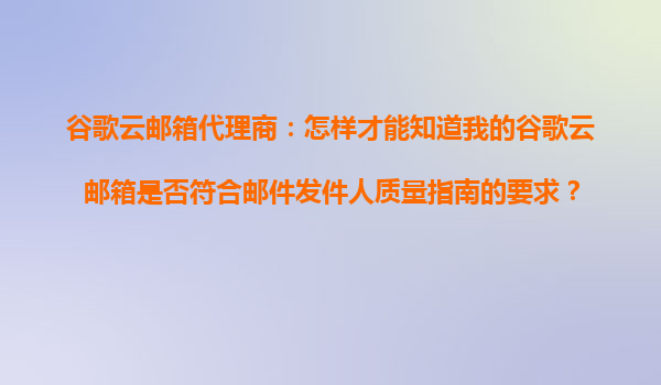2025-10-22谷歌云郵箱代理商指南:如何確保您的郵箱符合谷歌郵件發件人質量要求? 一、谷歌郵件發件人質量指南的核心要求 谷歌的郵件發件人質量指南(GoogleSenderGuide...