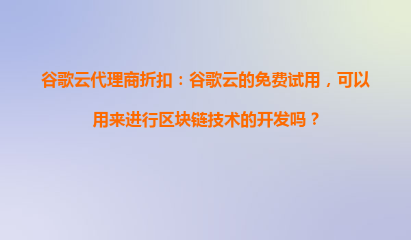 2025-10-22谷歌云代理商折扣:谷歌云免費試用支持區塊鏈技術開發嗎? 一、谷歌云免費試用的核心優勢 谷歌云提供新用戶300美元(或等值貨幣)的12個月免費試用額度,覆蓋計算引擎、云存儲、數據庫等核心服務。其技...