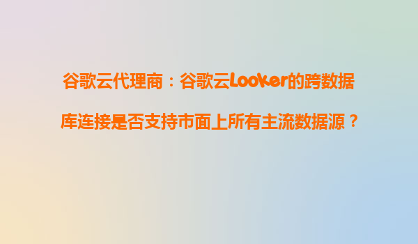 谷歌云代理商:谷歌云Looker的跨數據庫連接是否支持市面上所有主流數據源? 一、Looker的跨數據庫連接能力 谷歌云Looker作為一款領先的商業智能(BI)和數據可視化工具,其核心優勢之一在于強大的跨數據庫連...