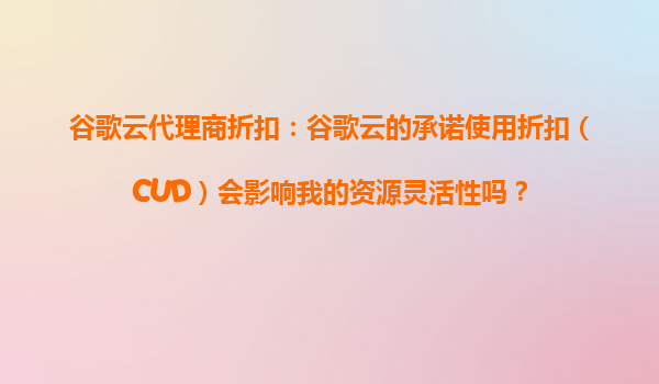2025-10-21谷歌云代理商折扣:谷歌云的承諾使用折扣(CUD)會影響我的資源靈活性嗎? 引言 在云計算領域,成本優化與資源靈活性往往是一對需要平衡的關鍵因素。谷歌云的承諾使用折扣(CommittedUseDiscounts,CUD)...