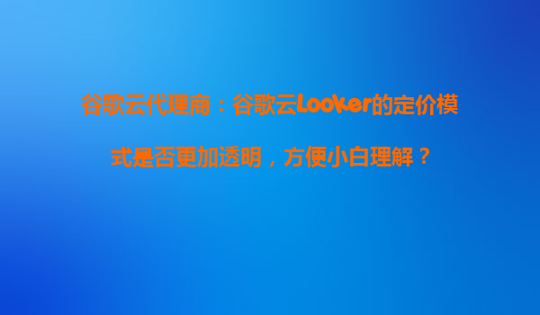 谷歌云代理商解析:谷歌云Looker的定價模式是否更加透明,方便小白理解? 引言 隨著數據驅動決策的普及,越來越多的企業開始關注商業智能(BI)工具的選型。谷歌云旗下的Looker作為...