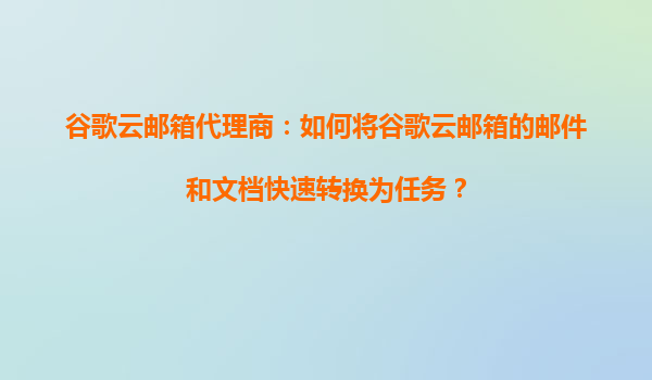 2025-10-21谷歌云郵箱代理商:如何將谷歌云郵箱的郵件和文檔快速轉換為任務? 一、谷歌云郵箱的核心優勢 谷歌云郵箱(GmailwithGoogleWorkspace)作為企業級郵箱解決方案,不僅...