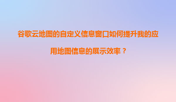 2025-11-21谷歌云地圖自定義信息窗口如何提升應(yīng)用地圖信息展示效率 引言 在當(dāng)今數(shù)字化時代,地圖應(yīng)用已成為許多企業(yè)和開發(fā)者不可或缺的工具。無論是物流追蹤、位置服務(wù)還是數(shù)據(jù)分析,地圖信息的展示效率直接影響用戶體驗...