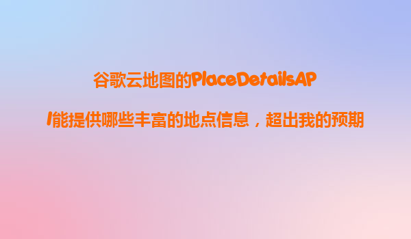 2025-11-22谷歌云地圖PlaceDetailsAPI:超越預(yù)期的地點數(shù)據(jù)寶藏 一、PlaceDetailsAPI的核心能力 谷歌云地圖的PlaceDetailsAPI是一個強大的地理信息接口,它能夠提供遠超基礎(chǔ)地址信息的豐富數(shù)...