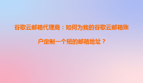 2025-10-21谷歌云郵箱代理商:如何為谷歌云郵箱賬戶定制短郵箱地址 谷歌云郵箱的獨特優勢 谷歌云郵箱作為全球領先的企業級電子郵件服務,憑借其強大的技術架構和豐富的功能,成為眾多企業首選。它不僅提供無縫的Gmail體驗,還...