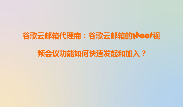 2025-10-21谷歌云郵箱代理商:谷歌云郵箱的Meet視頻會議功能如何快速發起和加入? 引言 在當今的數字化時代,遠程辦公和在線會議已成為企業日常運營的重要組成部分。谷歌云郵箱(GoogleWorkspace)...