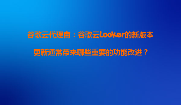 2025-10-21谷歌云代理商:谷歌云Looker的新版本更新通常帶來哪些重要的功能改進? 一、Looker與谷歌云的核心優勢 作為谷歌云的核心數據分析平臺,Looker深度整合了谷歌云的基礎設施優勢,包括全球化...