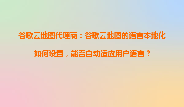 谷歌云地圖代理商:語言本地化與自動適配的卓越體驗 一、谷歌云地圖的語言本地化功能 谷歌云地圖作為全球領先的地圖服務之一,其語言本地化功能為用戶提供了極大的便利。通過谷歌...