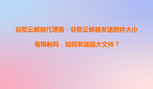 2025-10-20谷歌云郵箱代理商指南:附件限制與超大文件發送解決方案 谷歌云郵箱的附件大小限制 在使用谷歌云郵箱(Gmail)發送郵件時,附件大小確實存在限制。目前,單個郵件的附件總大小不能超過25MB(包括郵件正文和所有...